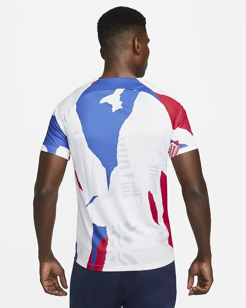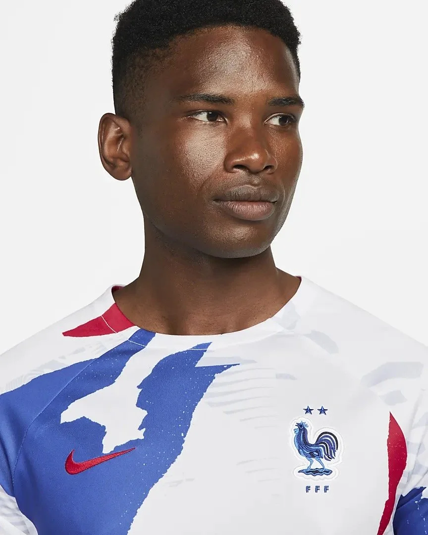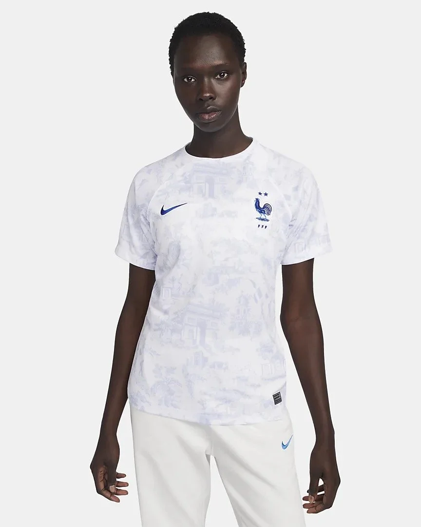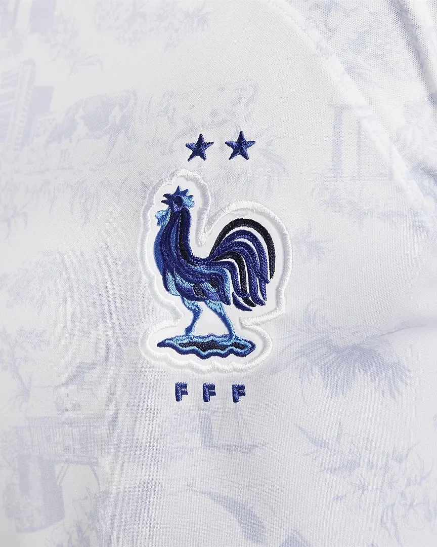 The French away kit makes a subtle statement. Honoring French textiles with a toile de jouy that represents each of the thirteen regions in the country. Bold yet understated.