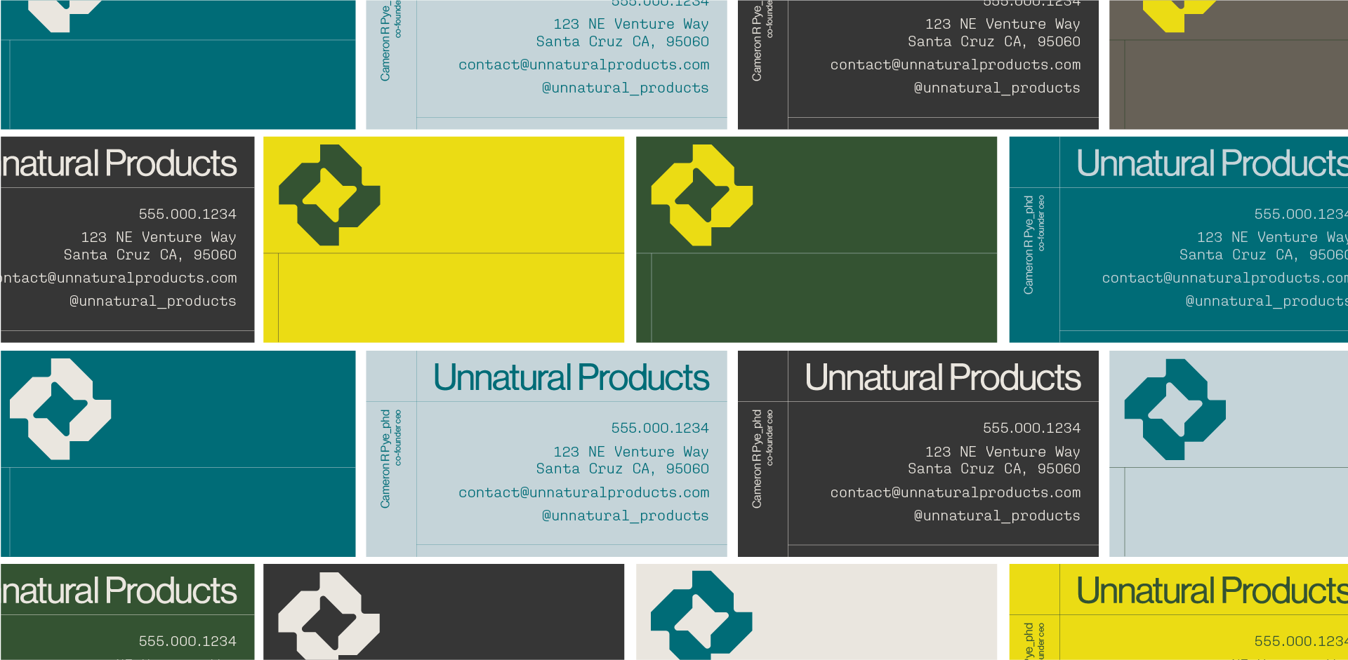 Brand identity for Unnatural Products. A california biotech company harnessing the power of the macrocycle to make previously undruggable aliements druggable.